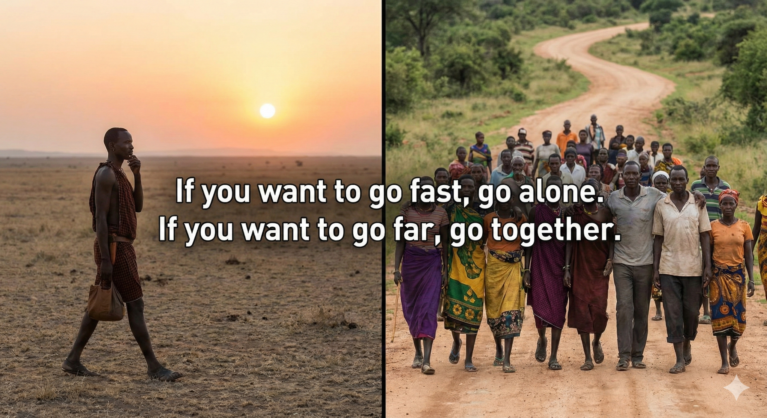 アフリカのことわざには「早く行きたければ、一人で進め。遠くまで行きたければ、皆で進め」というものがあります。
